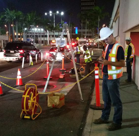 UMS completed a utility engineering 3D project to locate and map all the utilities along the two-mile corridor of the APM project, utilizing the ASCE/CI 38-02 Standard. Multiple advanced 3D acquisition technologies and methodologies were applied to produce a 3D model and BIM output with Quality Levels as per the ASCE/CI 38-02 Standard. UMS was under contract with MAPLAX, a joint venture comprised of Parsons Brinckerhoff, Inc. and STV Inc., to support the preliminary design and program development for LAWA and the LAMP.